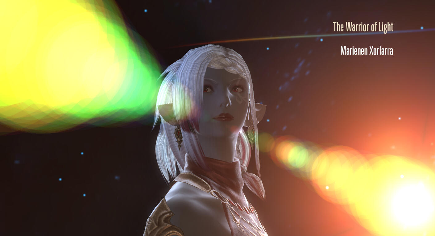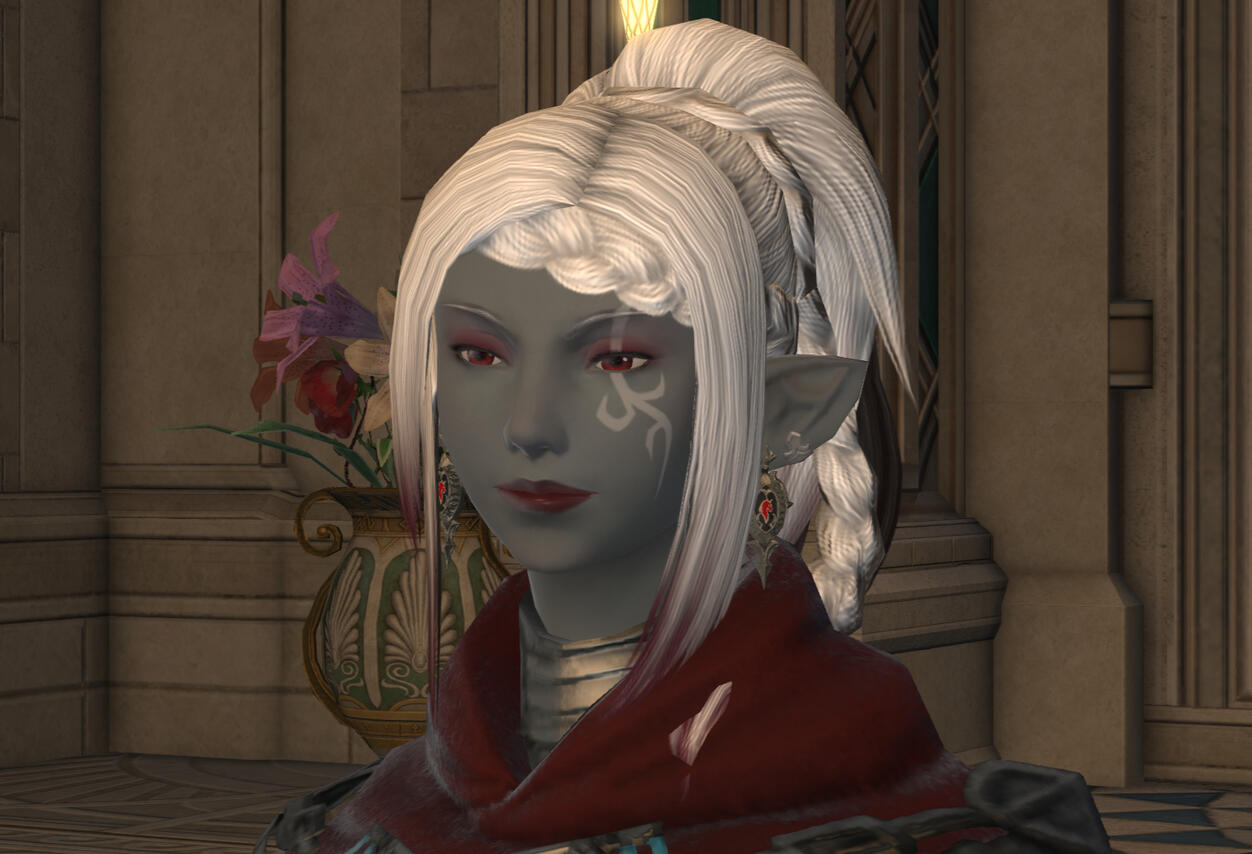 Notable Features: Facial tattoo around left eye; always wears House Fortemps crest (usually as earrings)Chocobo: Elinor, sports white feathersOccupation: Adventurer, Warrior of Light/Darkness, Champion, Hero, Botanist Extraordinaire, and Very Tired Free Company 'Mom'Homeland: Unknown
